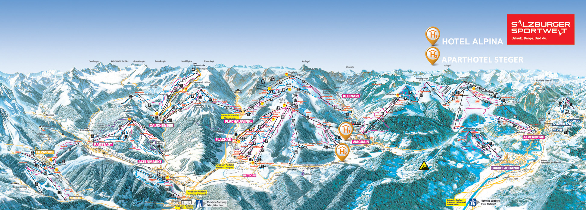 Dzięki budowie nowoczesnej kolei linowej Panorama, łączącej ośrodki Wagrain/Flachau oraz Flachauwinkl/Kleinarl, powstał w sezonie 2020/2021 jeden z największych i najbardziej zróżnicowanych regionów sportów zimowych w Europie, oferujący narciarzom ponad 200 km połączonych ze sobą tras.