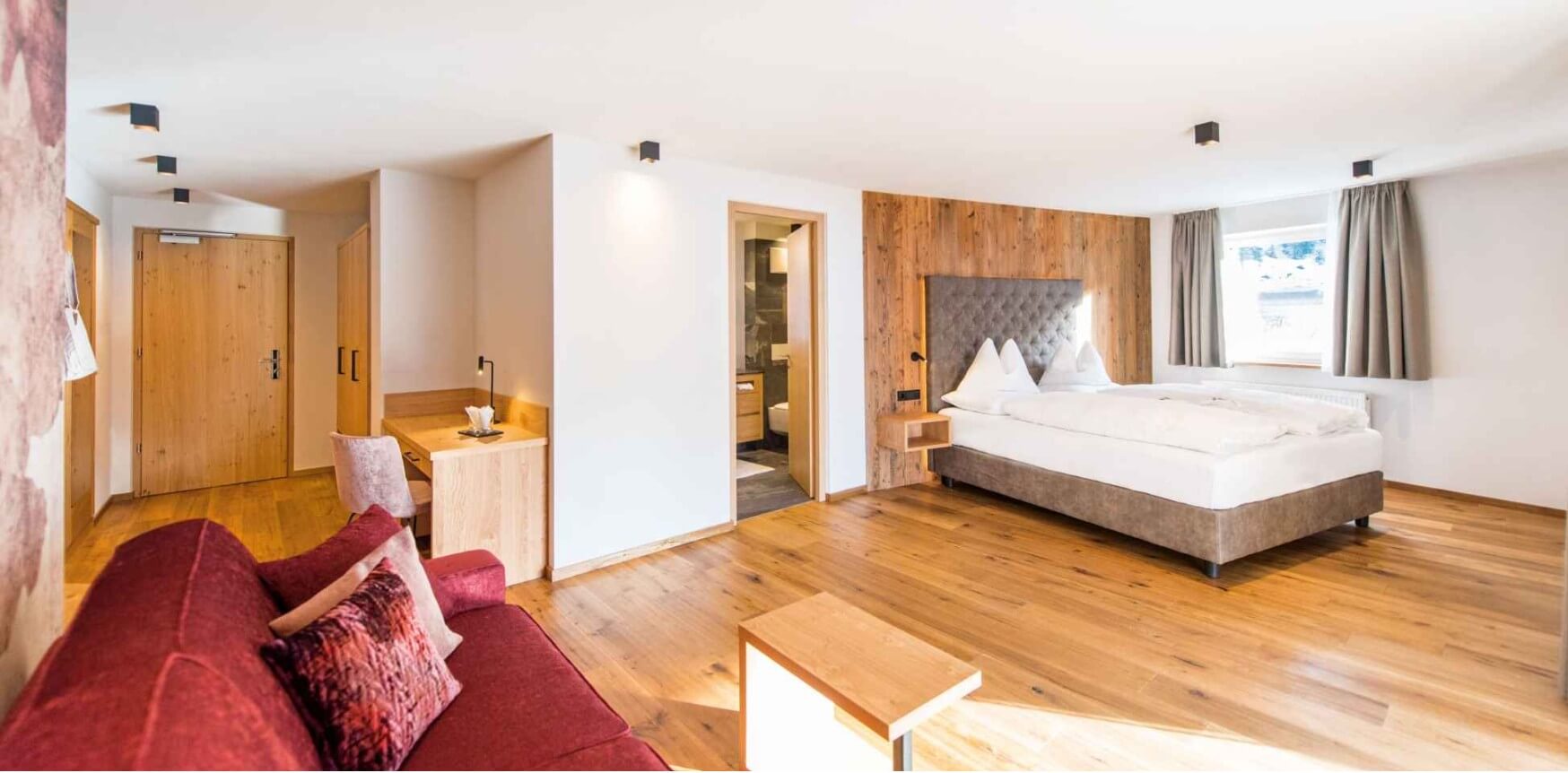 Larice Suite – apartament 2-4 osobowy jednosypialniany o powierzchni 39m2; łóżko podwójne i podwójna rozkładana sofa