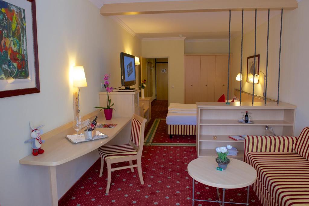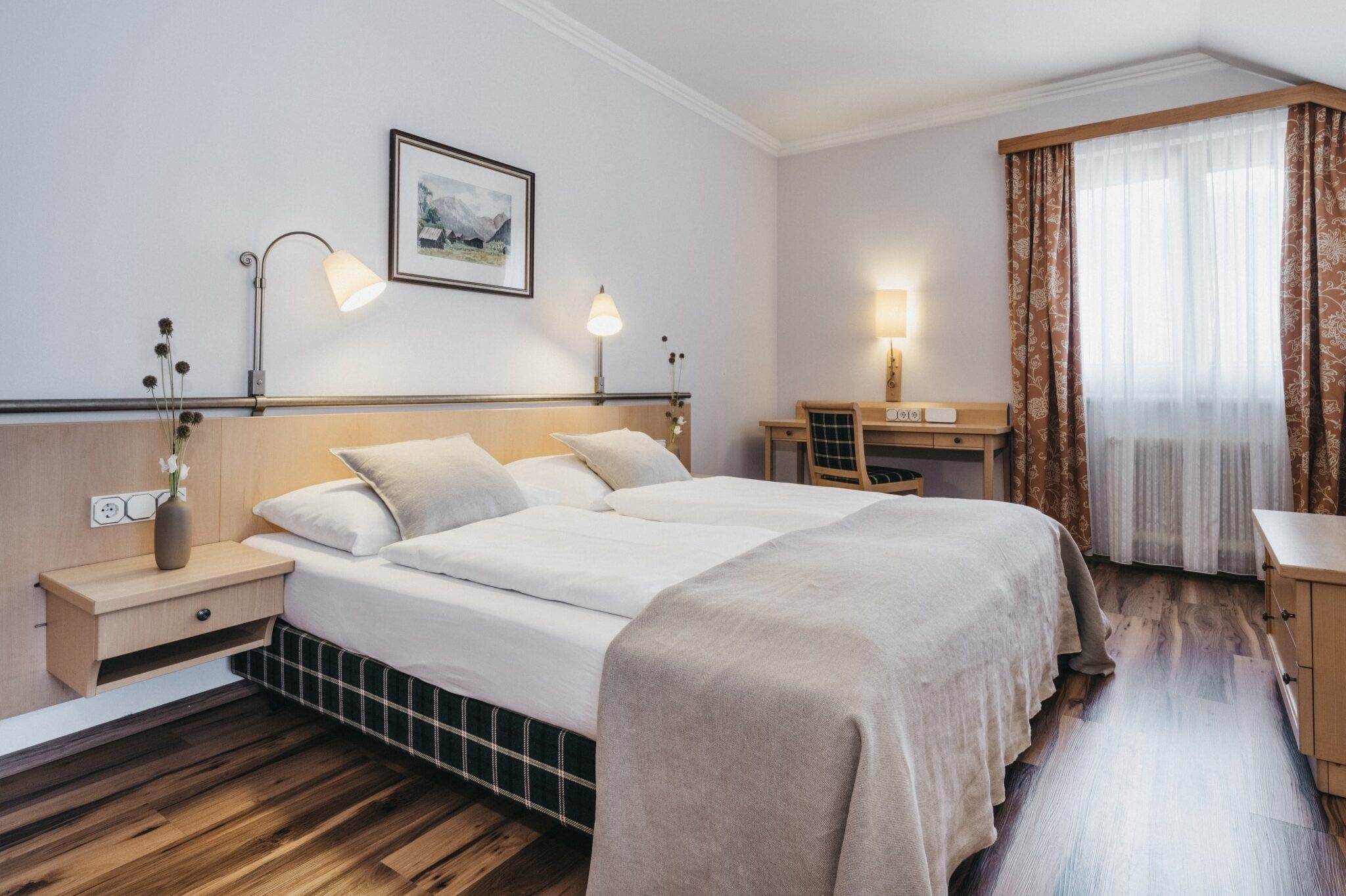 Pokój dwu-/trzyosobowy: ok. 20-25m2 dla 2-3 osób (łóżko podwójne, łóżko pojedyncze – w pokoju 3-os.), z przedpokojem, łazienką z prysznicem lub wanną i WC, suszarką do włosów, telefonem, WLAN, telewizją kablową i sejfem
